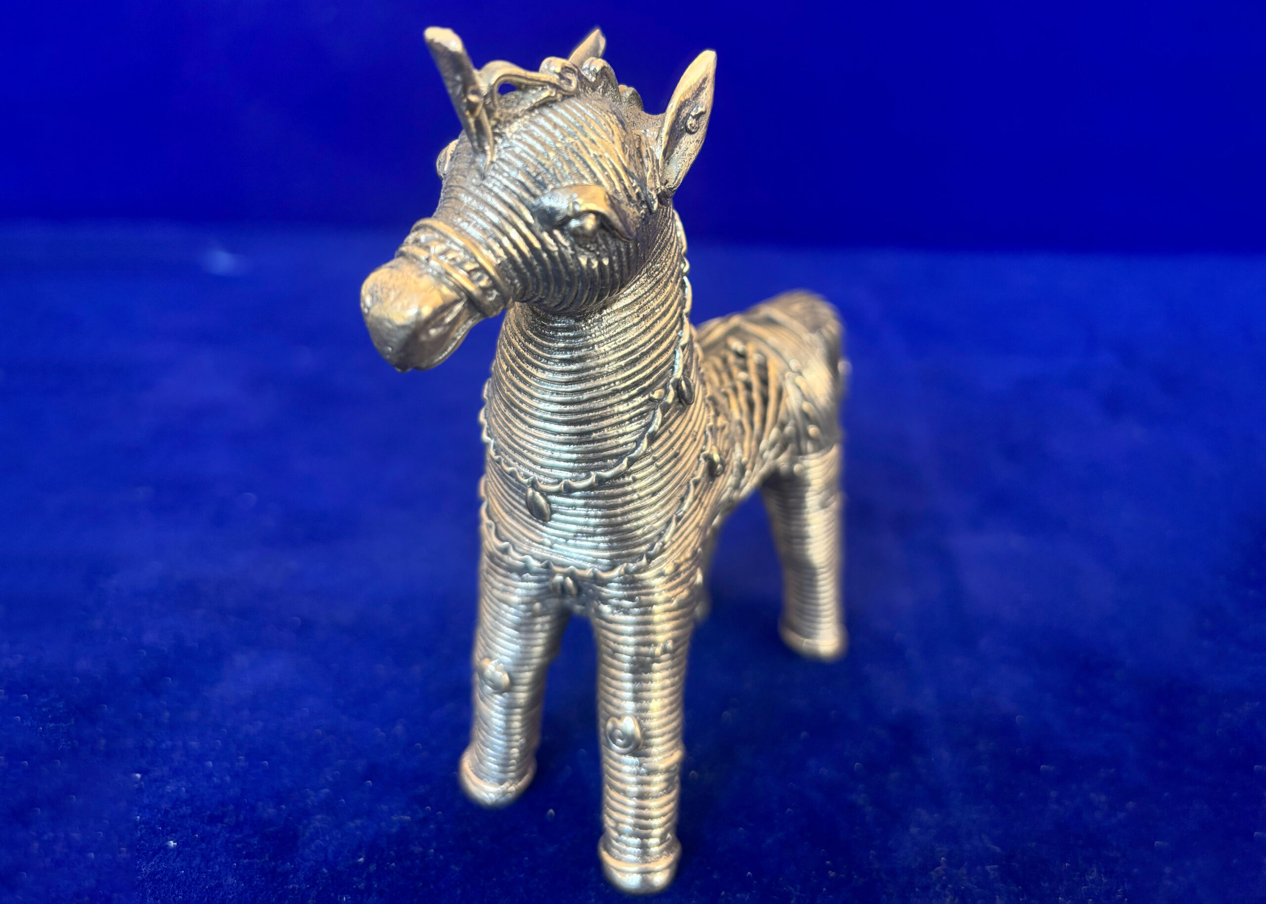 Handcrafted Dhokra horse serves as an excellent decorative piece, bringing both artistic and cultural value to any space. It’s a representation of the skill and creativity of tribal artisans, preserving a rich heritage of craftsmanship
